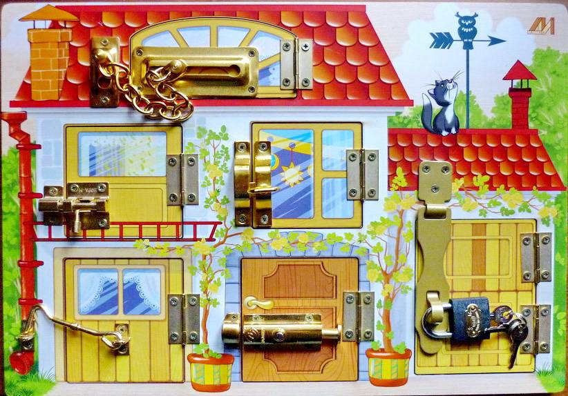 Вы можете дополнить доску задвижками и ключиками, замками и защелками, картинками и тканью, украсить фотографиями и надписями, создать «сменные комплекты» на одной базе, чтобы игрушка долго не надоела вашему малышу.