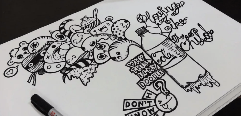 - Нарисовать дудлы можно разными инструментами — ограничений нет, но лучше выбирать те, которыми вам удобно работать, приятно держать в руках. Эмоциональный настрой здесь важен, он влияет на весь процесс и зависит от таких, казалось бы, мелких деталей, как поверхность карандаша, яркость цвета…