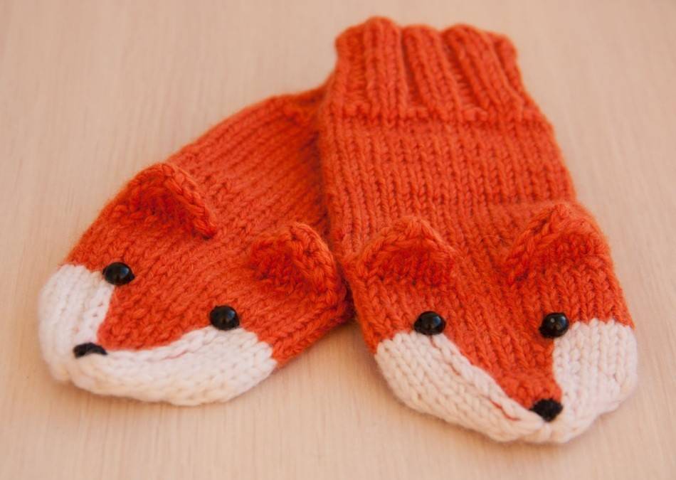 На 3 спицах вяжутся симпатичные варежки-лисички