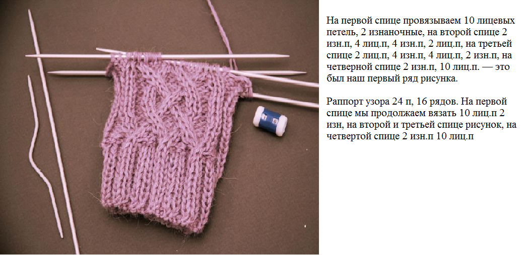 - Раппорт узора равен 12. Повторять с 1 по 16 ряд.