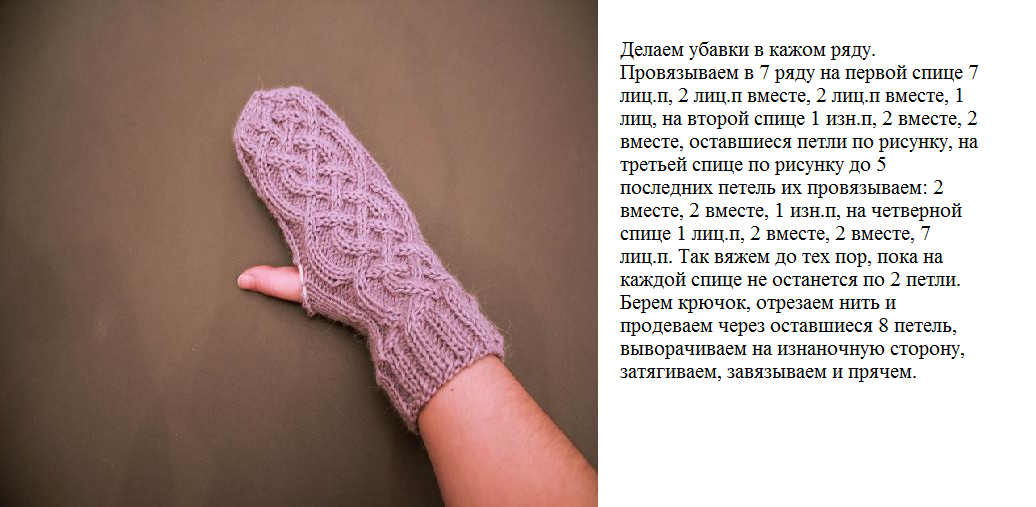 - остаток петель стяните нитью. Ее конец спрячьте внутри варежки,