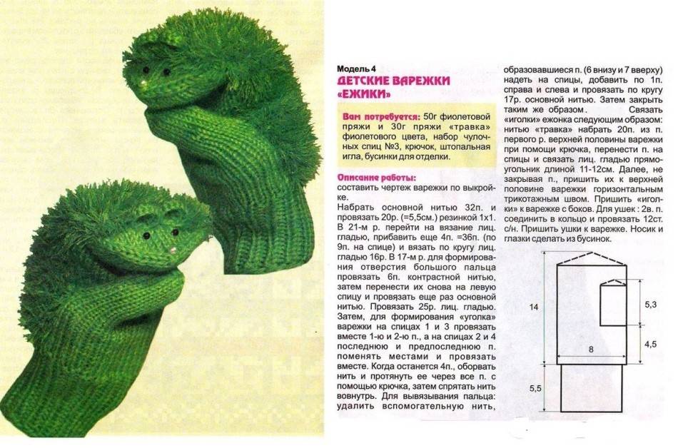 . Спереди они смотрятся довольно аккуратно, а вот на тыльной стороне ладони располагаются мягкие «иголочки» из ниток, а на пальчиках – мордочка ежика. На этом фото расписан подробный мк.