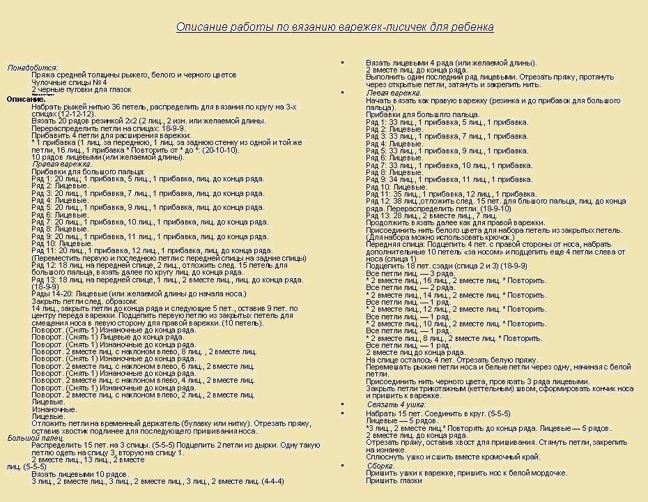 На 3 спицах вяжутся симпатичные варежки-лисички