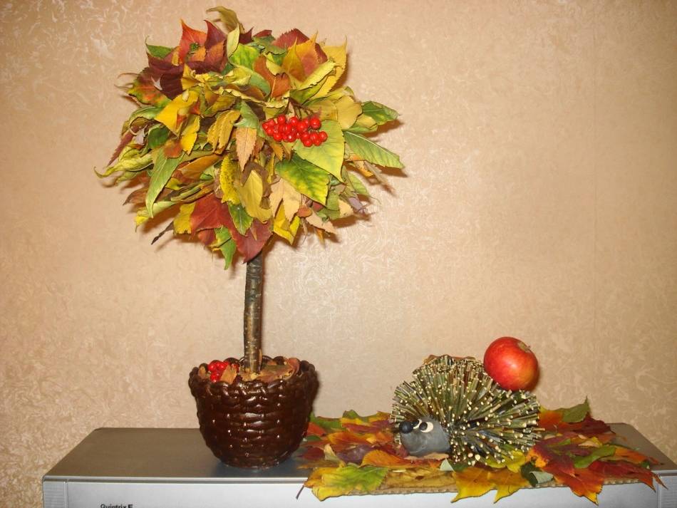 Экибана из листьев своими руками делаем для детей на тему осень