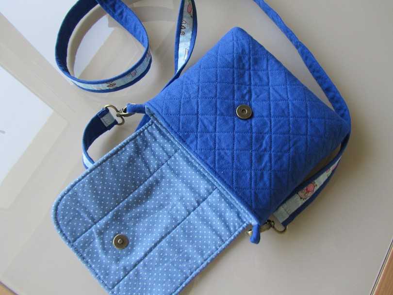 Пришейте пару внутренних карманов с клапанами для мелочей из плотной ткани. Теперь сумку следует вывернуть налицо и тщательно прогладить утюгом, чтобы расправились швы.
