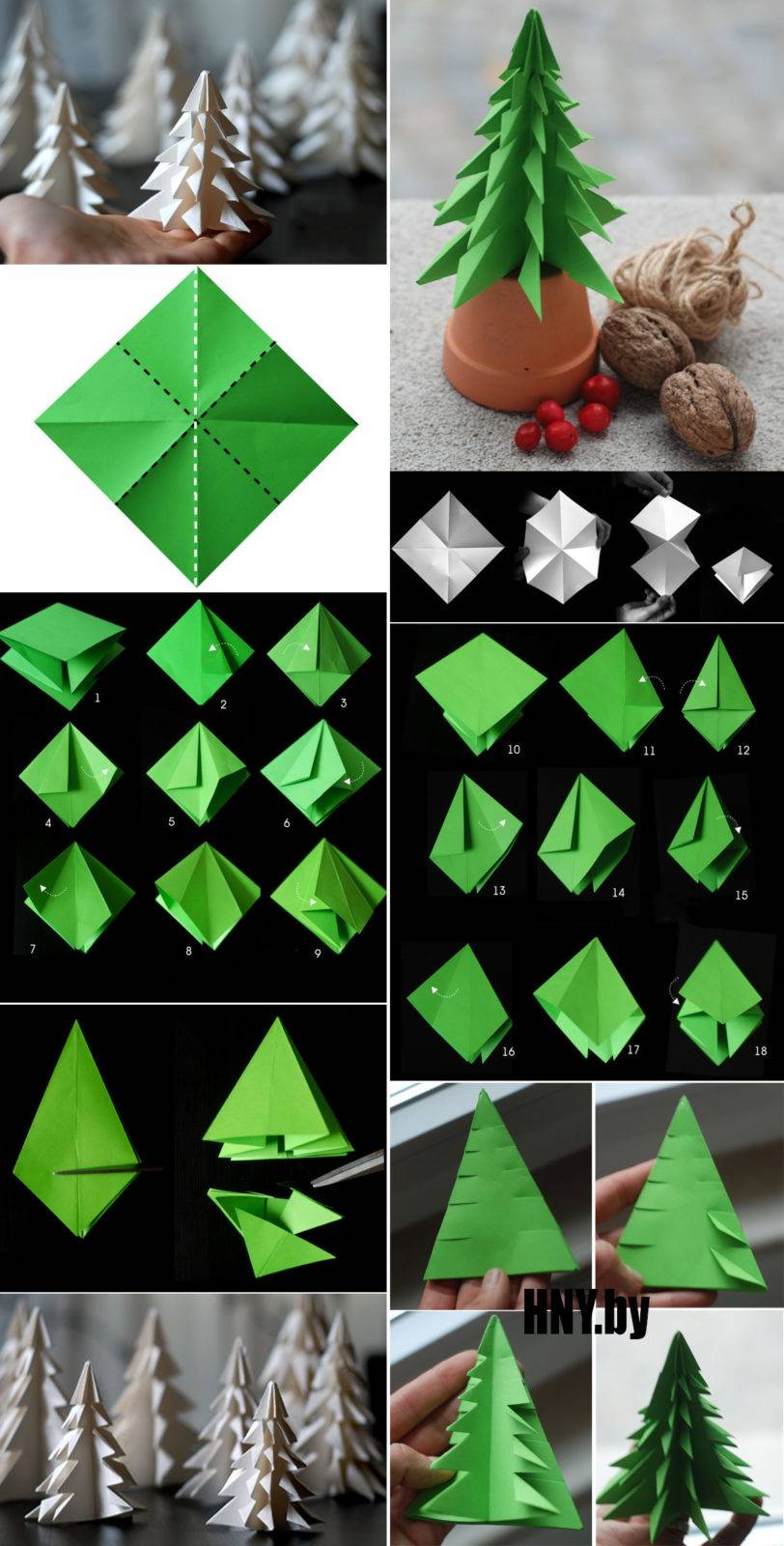 Предлагаем использовать одну из представленных техник создания бумажной объемной елки для дома, офиса и любого помещения своими руками.