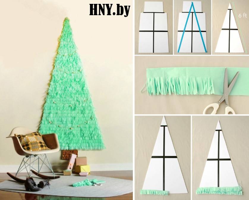 - Теперь осталось закрепить елку на стене и подготовить елочные игрушки. Можно украшать!
