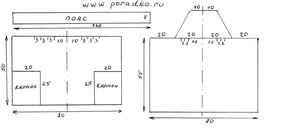 При желании вы можете работать и без использования выкройки, однако мы рекомендуем спланировать и расчертить ваш будущий фартук. Построение выкройки позволит правильно и без ошибок просчитать длину и ширину вашего законченного изделия, а также необходимое количество материи и тканевого полотна.