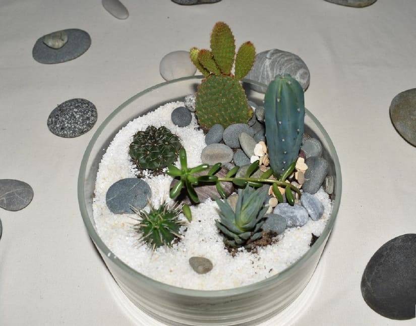 Для этого флорариума подберите несколько кактусов и суккуленты