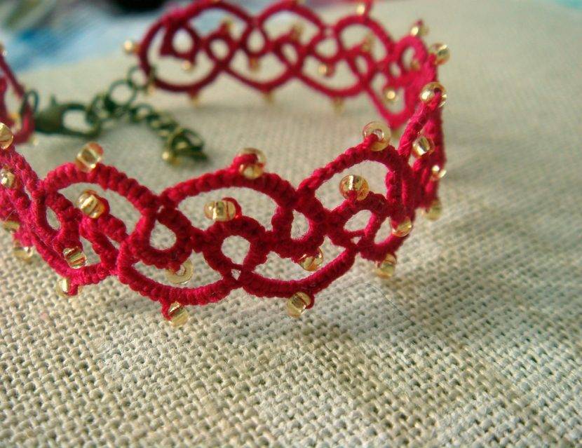 Проще всего вплетать бисер там, где вывязывается пико. Если оно по схеме располагается на кольце, тогда бисер передвигается к петле, которая создает кольцо. Делать это следует до момента, как начнется плетение первого узелка. Прочие бисеринки располагаются на челноке. Бисеринки, которые остались, нужно придвинуть в сторону мизинца, так они не будут мешать вязанию. В момент, когда вы уже дошли до пико, следует сдвинуть бисер в сторону узлов и вязать дальше.