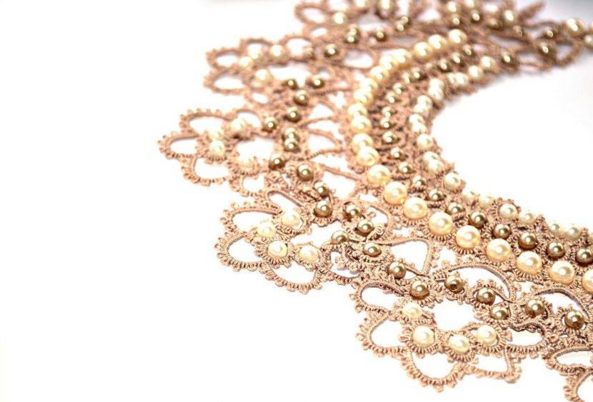Челночное плетение — многогранный вид искусства. С помощью несложной техники можно создать воротники-чокеры, воротнички-ожерелья (с бисером и камнями) и, конечно же, классические пришивные воротнички. Приступая к плетению фриволите своими руками, следует учитывать, что любую схему придется изменять по размеру вашей шеи и вырезу горловины. Чтобы готовое изделие хорошо ложилось на плечах, выбирайте ажурные узоры, но старайтесь не затягивать плетение.