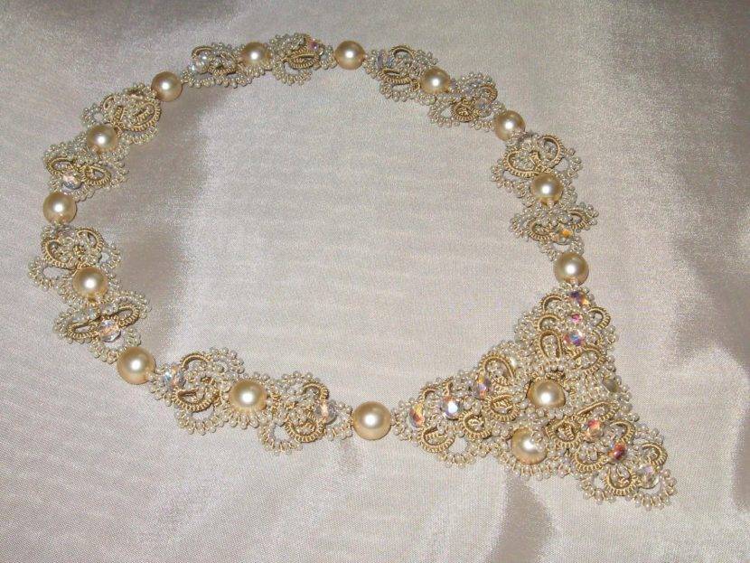 Для освоения этого вида рукоделия требуется много времени и сил, но все потраченное окупится после выполнения оригинальных и воздушных аксессуаров в такой технике. Начинать лучше с создания небольших кулонов, чокеров, воротничков или салфеток. Когда получится создавать красивые и ровные узелки с колечками, можно начинать украшать изделия бусинами, бисером, стразами, чтобы получить изысканные шедевры.