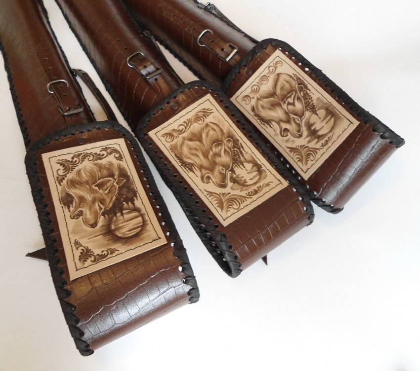 В завершение работы заготовка принимает необходимую форму, после чего скрепляется при помощи заклепок. В предусмотренное заранее место вставляется кнопка закрытия. Кожаный футляр готов. Такое изделие прослужит не один десяток лет за счет высокой устойчивости кожи к износу. Что касается рисунка, то он также не исчезнет в процессе эксплуатации в ближайшие 10 лет точно.