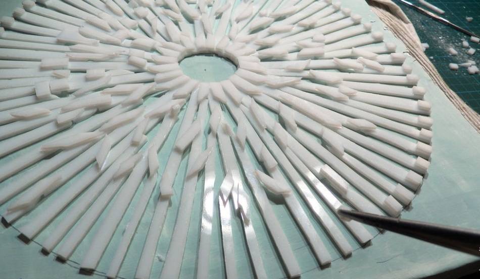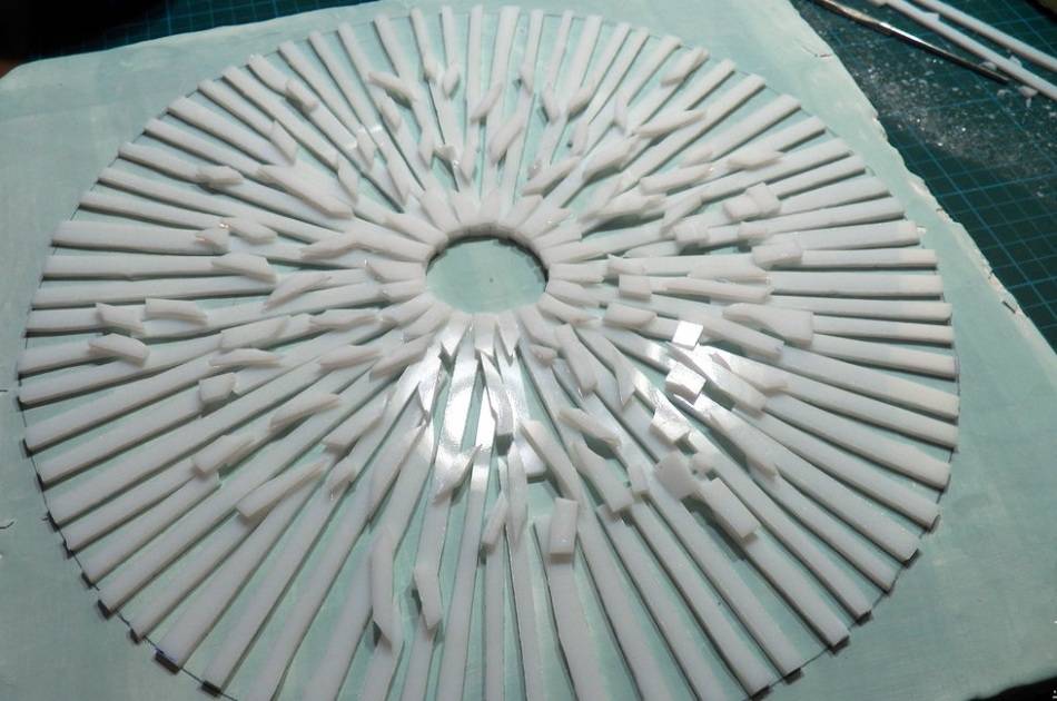 Второй слой стеклянных полосок для будущего фьюзинг-абажура