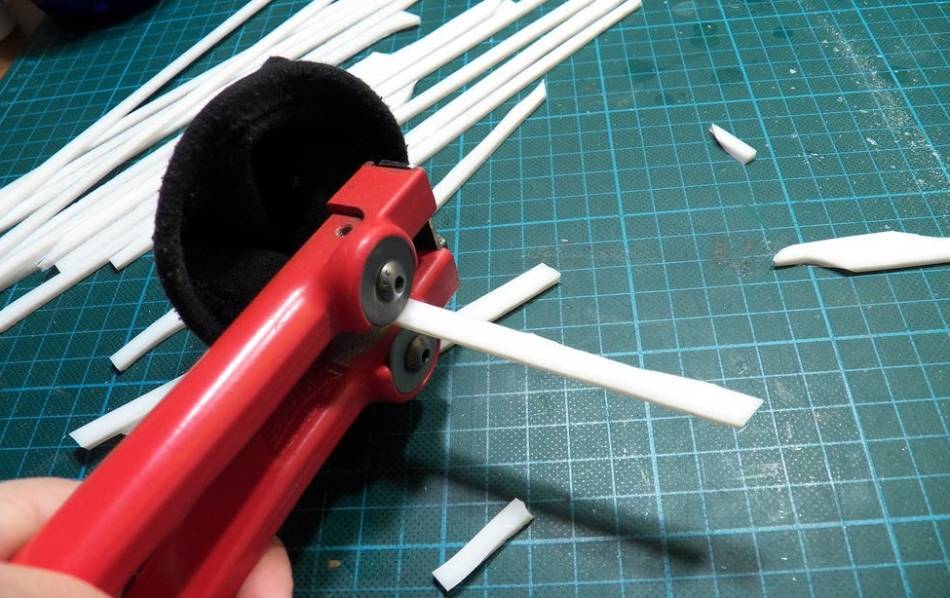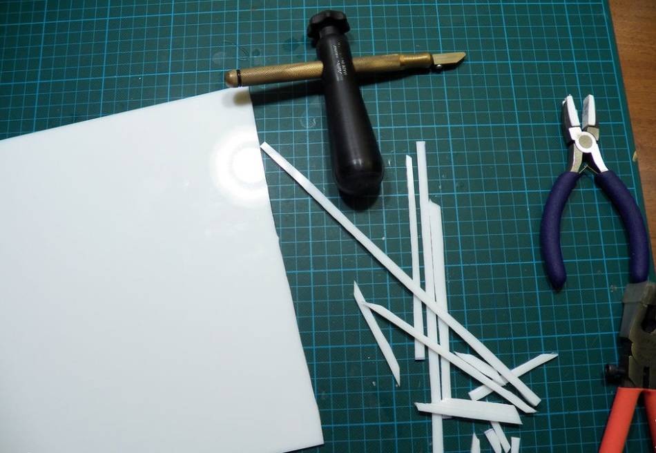 Теперь нужно заняться разрезанием стекла на полоски. Полоски могут быть различного размера. Из инструментов пригодятся ломатель для стекла, плоскогубцы и, конечно же, стеклорез.