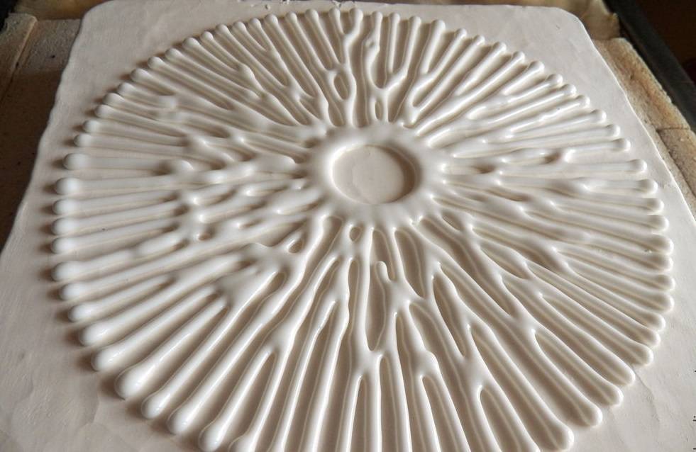 - По истечении времени достаем готовую тарелку и очищаем ее от гипса и термобумаги.
