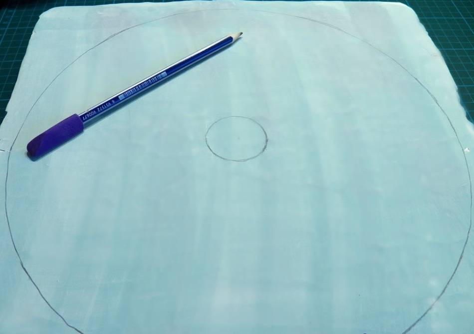 - Вырезаем его и кладем на дно подложки для тарелки.