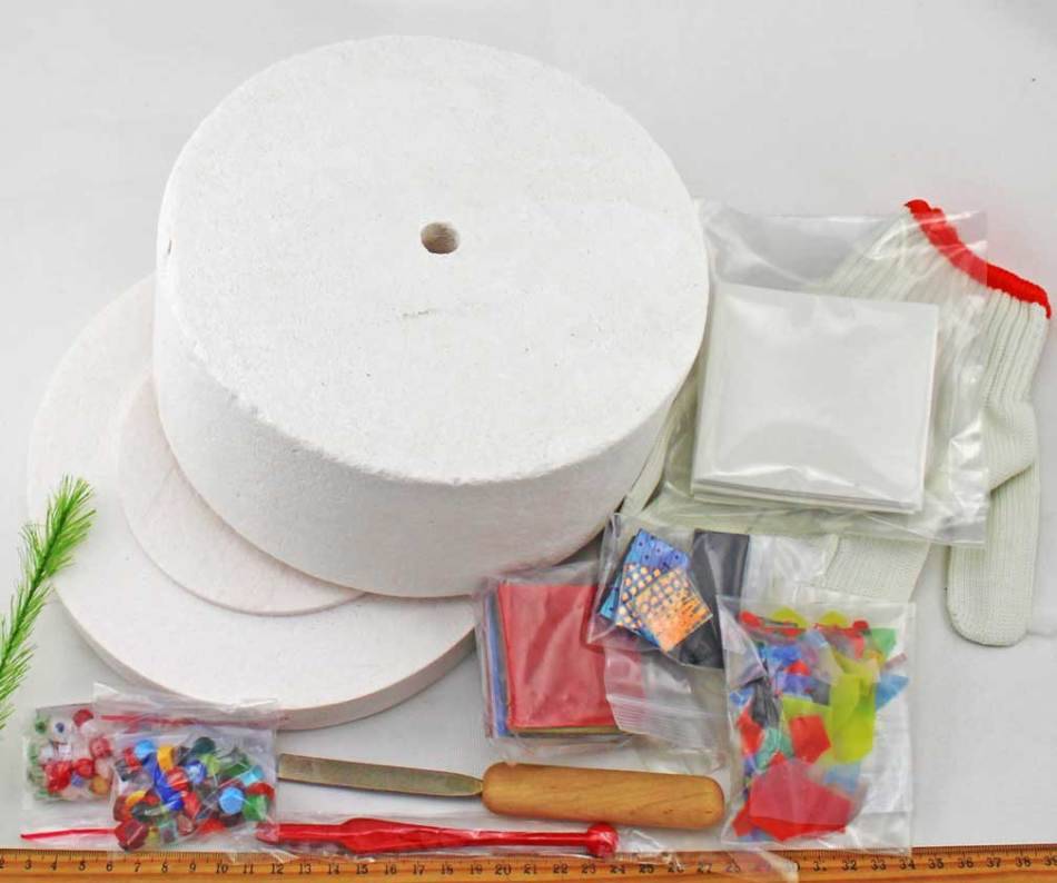 - Качественное стекло разного цвета в раздробленном состоянии. Показатель СОЕ должен быть идентичного уровня у всех компонентов заготовки, иначе области для соединения будут слабыми.