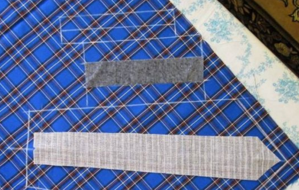 Выкроить закрепку, которая в готовом виде имеет ширину 2,5-3,5 см и длину, равную значению ширины галстука минус 2-3 см.