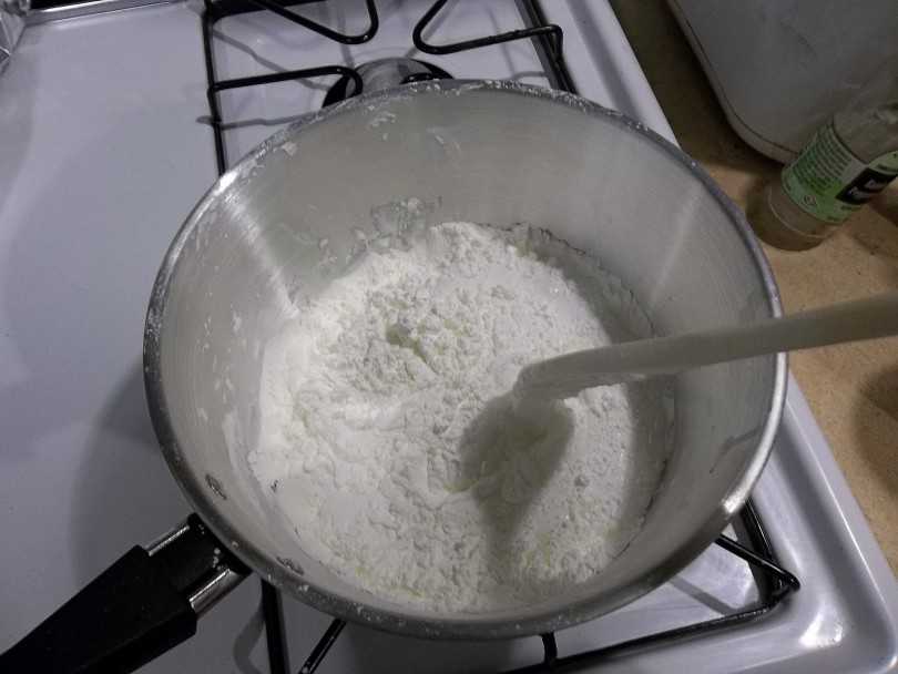 - Отмерьте крахмал согласно рецепту, перемешивайте смесь.