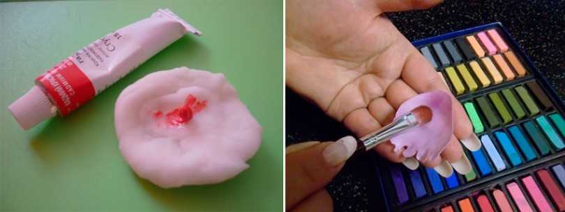 Окрасить фарфор можно различными способами. Для этого используйте акриловые, масляные краски, пищевые красители. Добавьте в готовую смесь желаемый цвет и вымешайте как тесто.