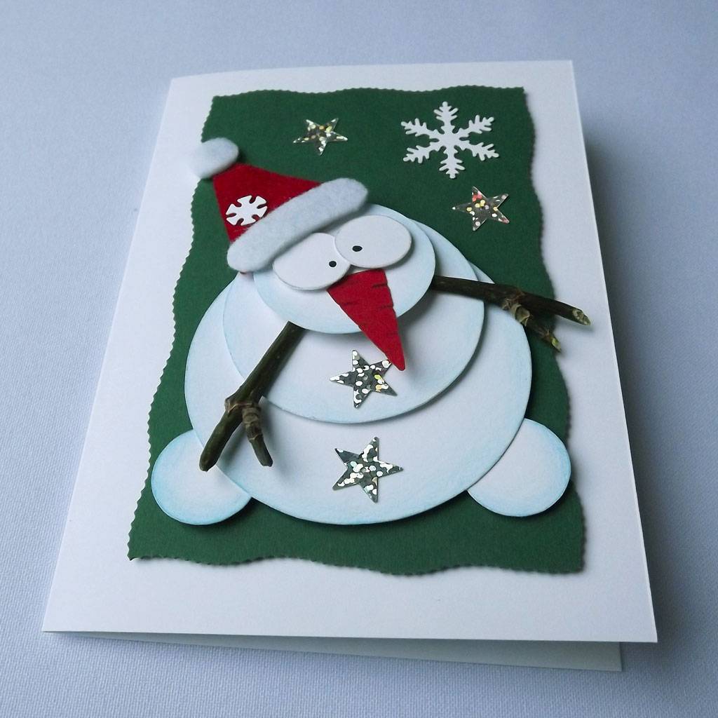 Поздравительная открытка в виде снеговика понравится многим людям, а потому можете смело включать свою фантазию и делать подобный презент.