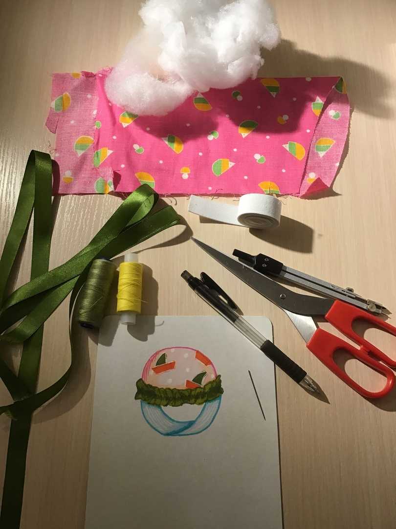 - Поместите внутрь кусок синтепона или ваты и сшейте ткань.