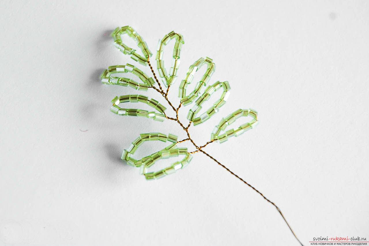 Петли состоят из 10 бисерин и должно их быть 11 штук. Скручиваете так, чтобы получилась ветка.