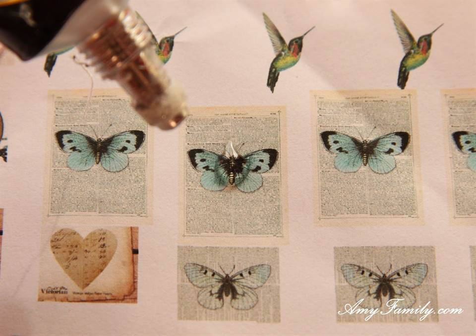 Для начала нужно капелькой клея капнуть на картинку.