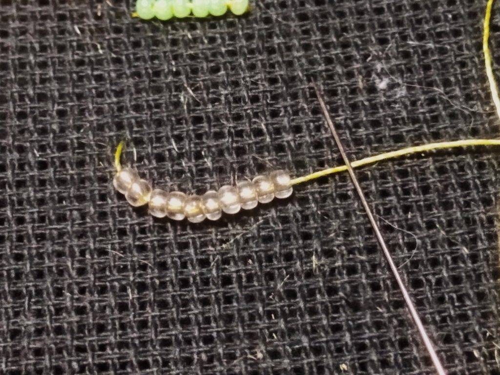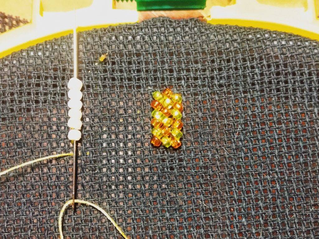 - далее набираем определенное число бисера и действуем по той же схеме пока не заполнится весь рисунок;