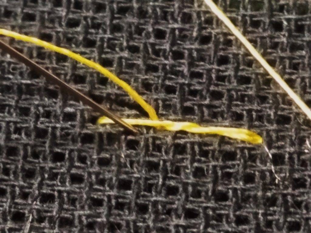 - двигайтесь по диагонали, вытаскивая иглу на лицевую сторону;