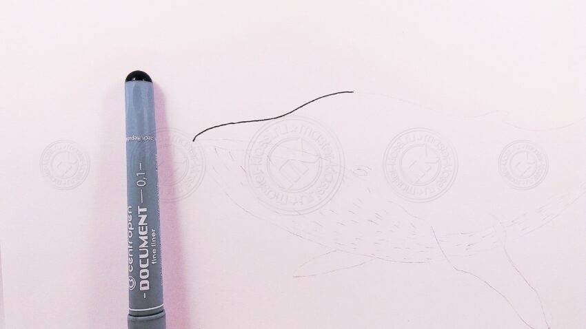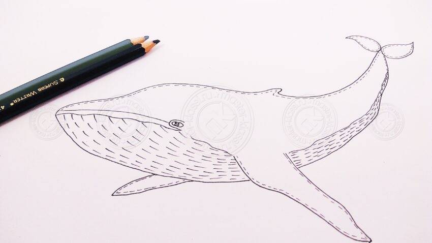 - Когда набросок сделан, давайте продолжим мастер-класс для начинающих, обводя и улучшая наш рисунок кита.