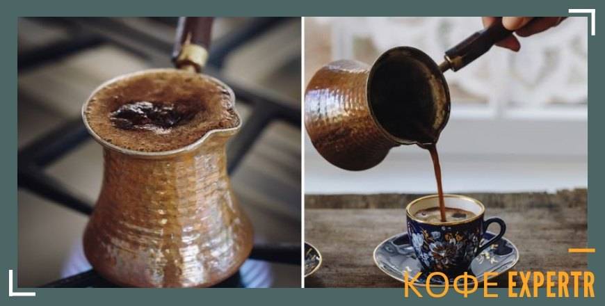 - Операцию повторяем, перемещая весь объем напитка из турки в чашку за 3-4 раза.