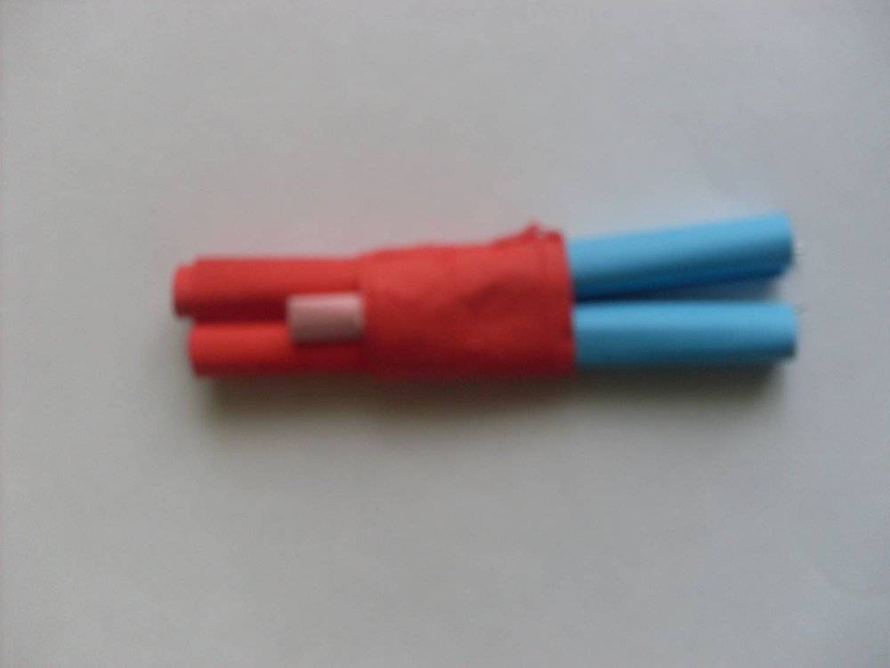 Делаем из листков бумаги трубочки: намазываем клеем-карандашом одну сторону квадрата, сворачиваем листок и склеиваем края. Надо сделать несколько таких трубочек из бумаги разного цвета, одну из трубочек сделать потолще в диаметре. Трубочки разрезать пополам.