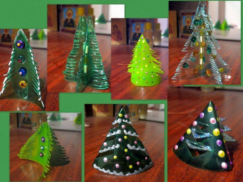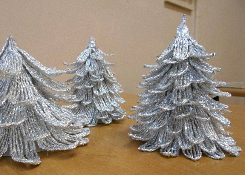 Если такие елочки кажутся вам чересчур хлипкими и хрупкими, то можно смастерить новогоднее деревце из более плотного материала. К тому же такая елка не будет просвечивать, будет больше напоминать настоящую новогоднюю красавицу.