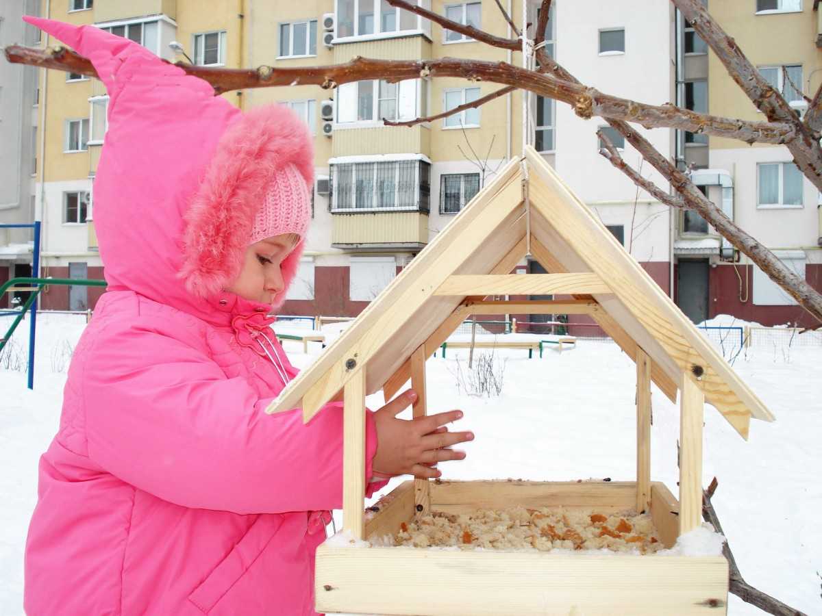 Научившись делать своими руками кормушки для птиц из пластиковой бутылки или других материалов, вы можете привлечь к работе детей. Они будут чувствовать себя важными и помогающими