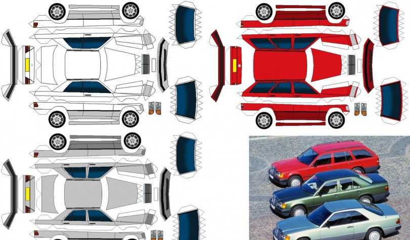 - Теперь аккуратно вырезаем машину по контуру и клеем на картон. Распечатать модели можно на специальном сайте для поделок.