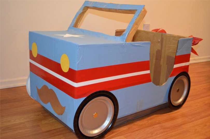 Отличные и простые в изготовлении машины получаются из разных коробок: обувных, упаковок из-под бытовой техники, косметических средств с применением других подручных материалов.