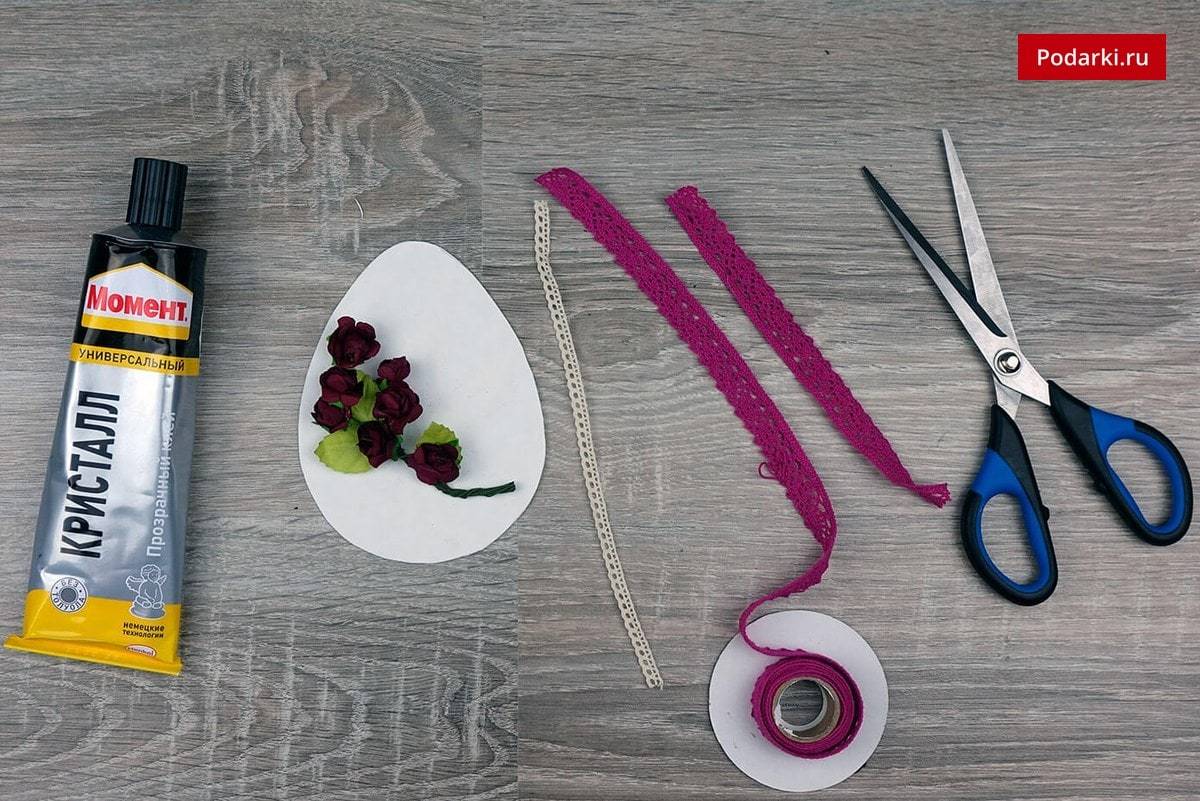 - Иметь ножницы, линейку и обязательно резиновый клей для крепления каждого декоративного элемента (можно так же использовать горячий пистолет и клей моментального засыхания).