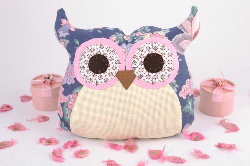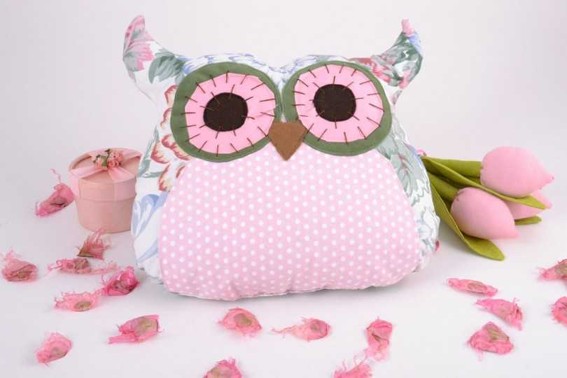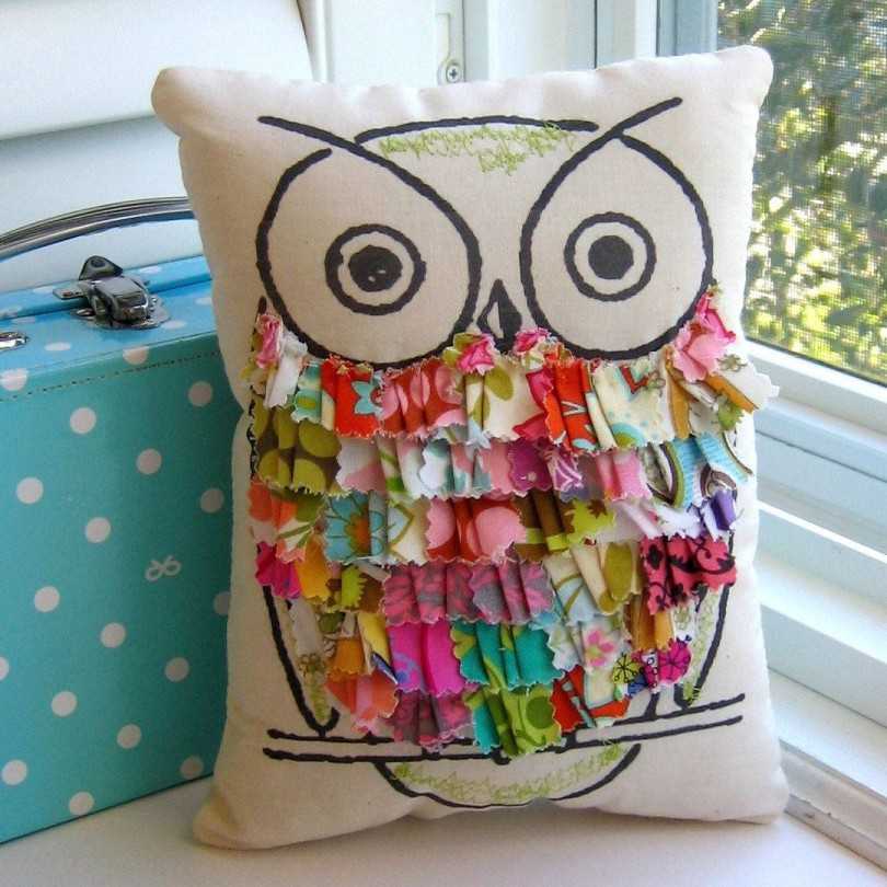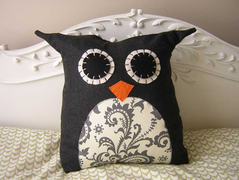 Какая будет композиция, зависит от вашей фантазии и умений. В крайнем случае, идеи можно подсмотреть в интернете, рассматривая фото подушек совы, сделанной своими руками, которых там в изобилии.