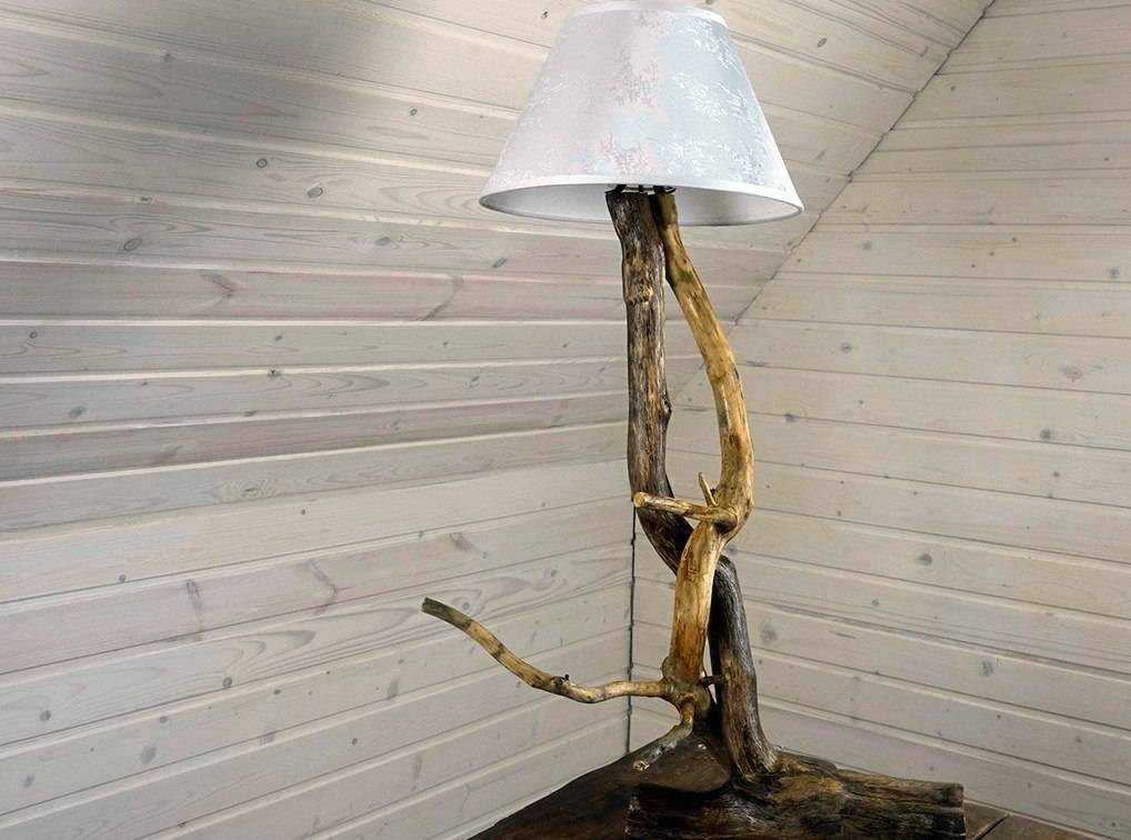Прутьями дерева украшаются осветительные приборы и люстра. Такой декор интерьера будет оригинально смотреться в спальне. Прутьями оформляется основание прикроватных ламп, торшер или люстра. Процесс декорирования стандартный. Веточки крепятся на торшер и помощью клея или проволки.
