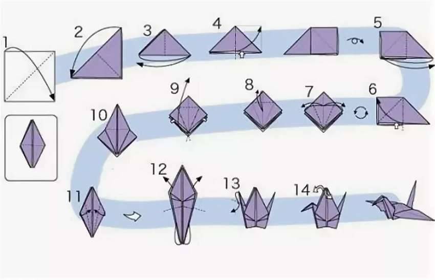 Бумажный журавлик поэтапно