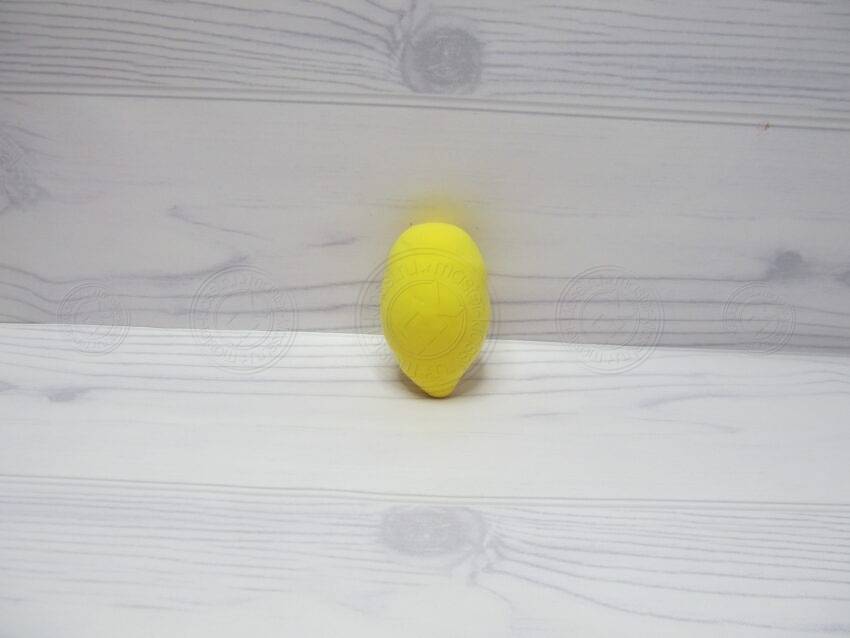 После очередного ужимания мы получим прекрасный лимончик, сделанный из полимерной глины! Осталось только запечь его в духовке. Смотрите обучающий видео-МК.