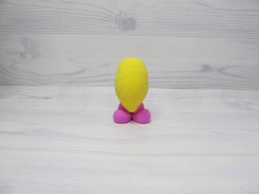 1. Возьмите желтый пластилин и подготовьте поверхность, на которой собираетесь работать. Положите на стол лист бумаги и все необходимые инструменты. Данный цвет является основным в нашей работе, поэтому желательно, чтобы его было в достаточном количестве.