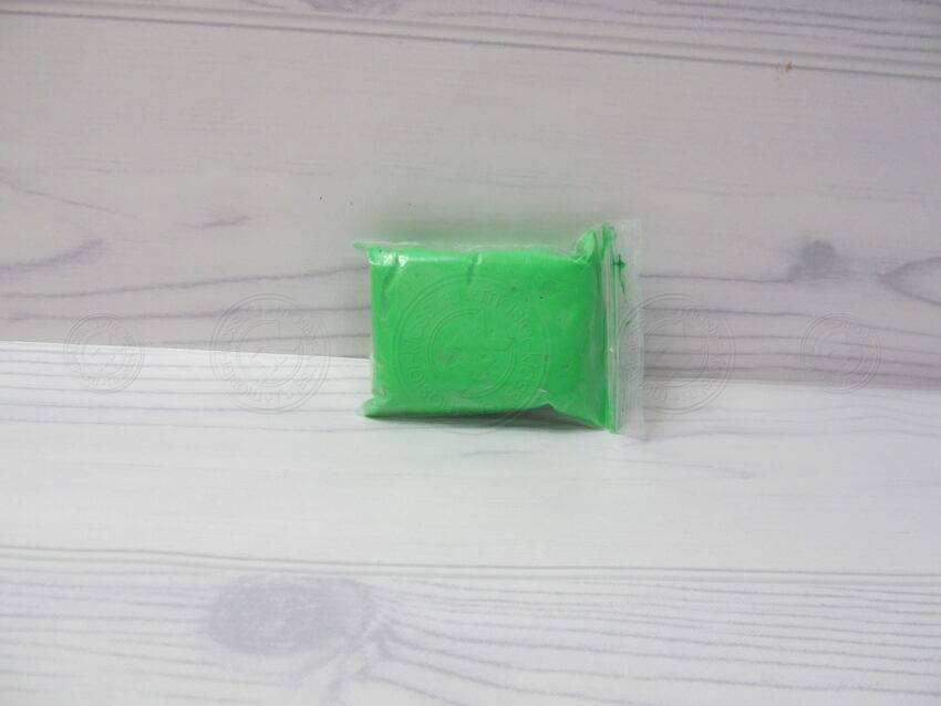 8. Возьмем зеленый пластилин и положим его на стол, для проведения дальнейших манипуляций.