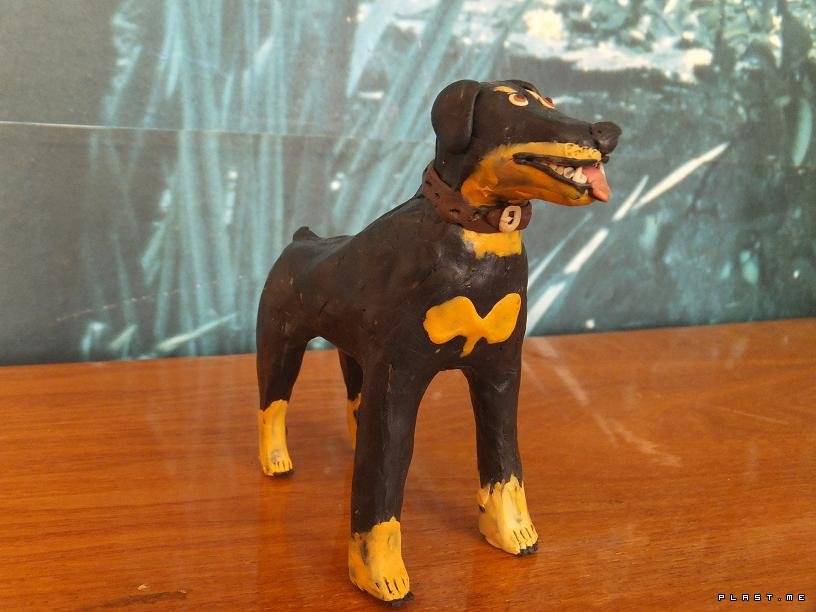Пластилиновую копию этой породы выполняют, подготовив все части заранее. Используется материал двух цветов: коричневый и чёрный.