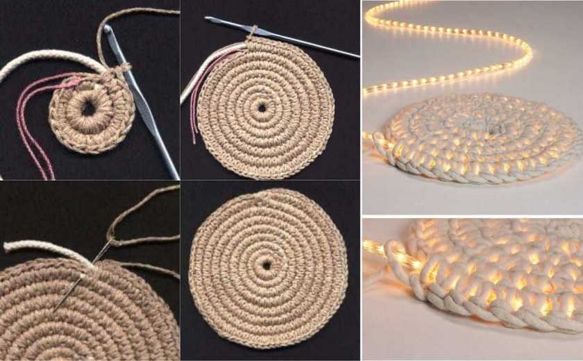 Для начала следует попробовать сделать простые круглые половички, которые начинаются от центра, постепенно увеличиваясь в диаметре по мере вывязывания рядов.