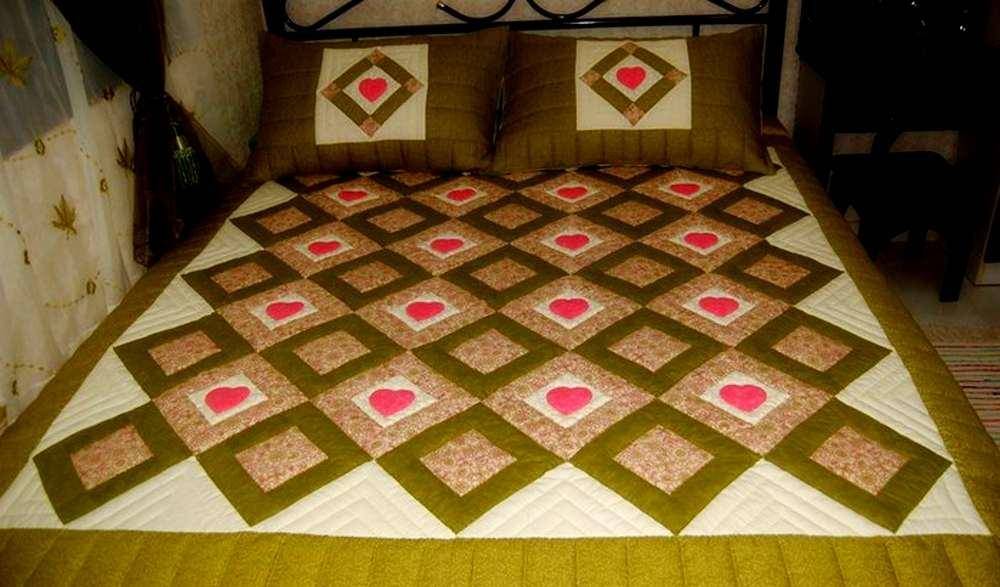 Как видите, работа по созданию такого стильного элемента интерьера не требует слишком большого мастерства. Усидчивости, желания, аккуратности и хотя бы скромного опыта в пользовании швейной машинкой будет достаточно, чтобы Вы сшили простое и симпатичное лоскутное покрывало.
