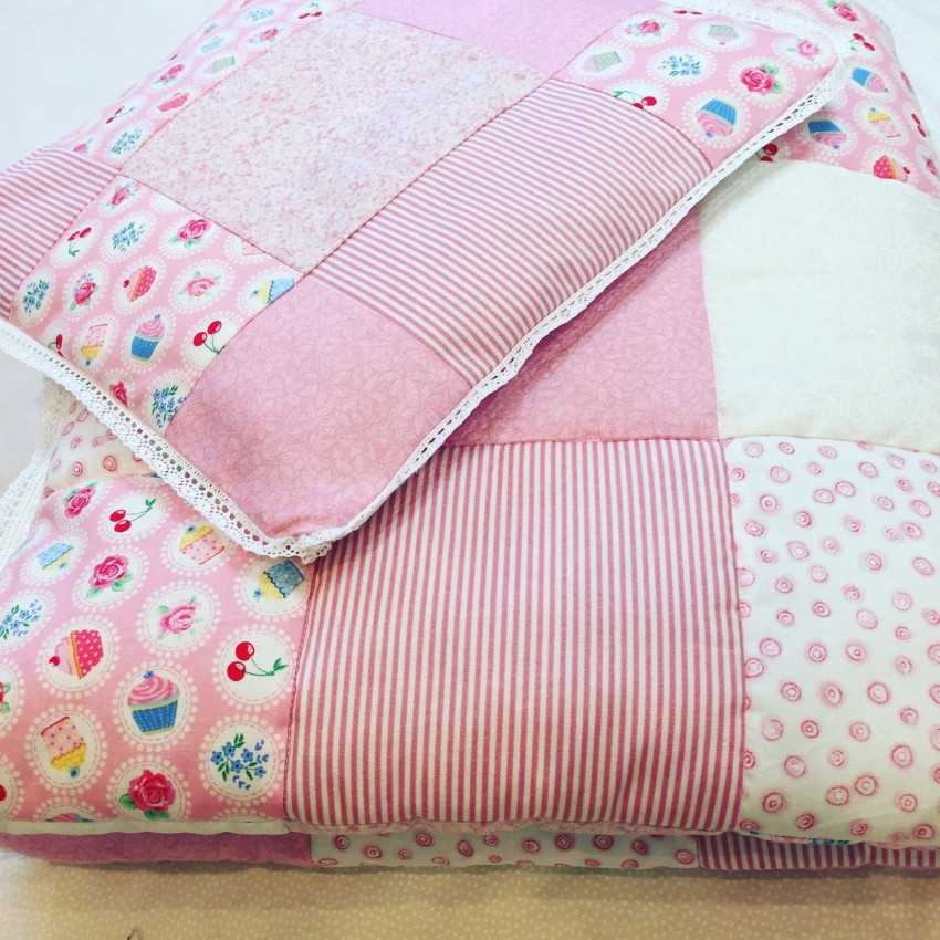 Можно сшить такой комплект из именного лоскутного одеяла и подушечки.