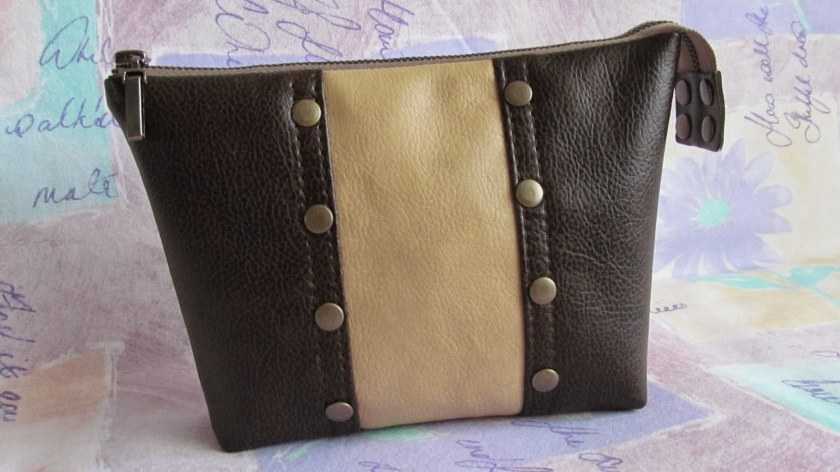 - Кожаное изделие выворачивается на лицевую сторону, и внутрь него вставляется косметичка из подкладки.